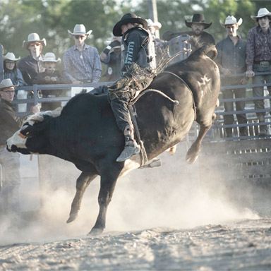 La saison des rodéos débute tôt au printemps et propose plusieurs épreuves avec bourses, courronée par une finale enlevante!
