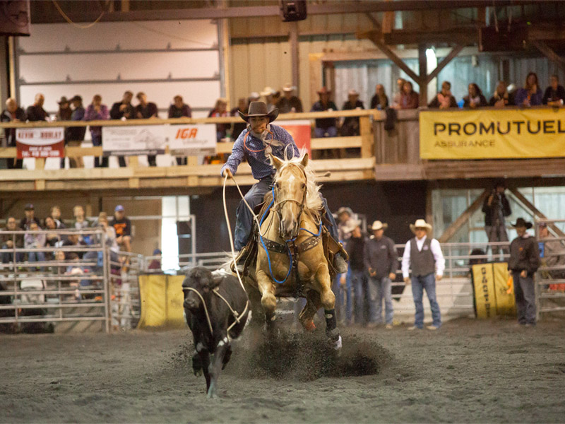 La saison des rodéos débute tôt au printemps et propose plusieurs épreuves avec bourses, courronée par une finale enlevante!